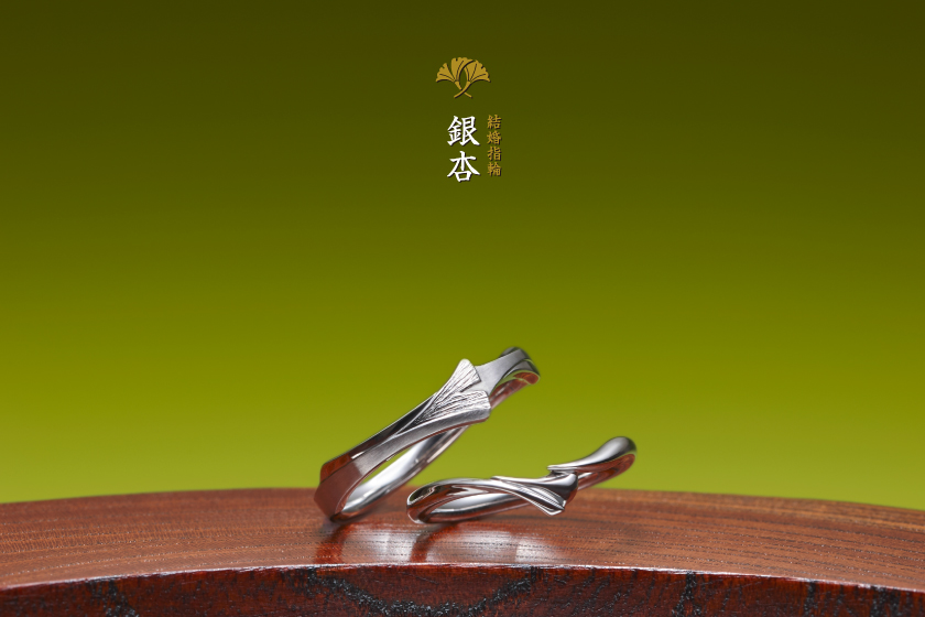 オスとメスの樹木で存在した銀杏を、二人の永遠と説いた結婚指輪です。
